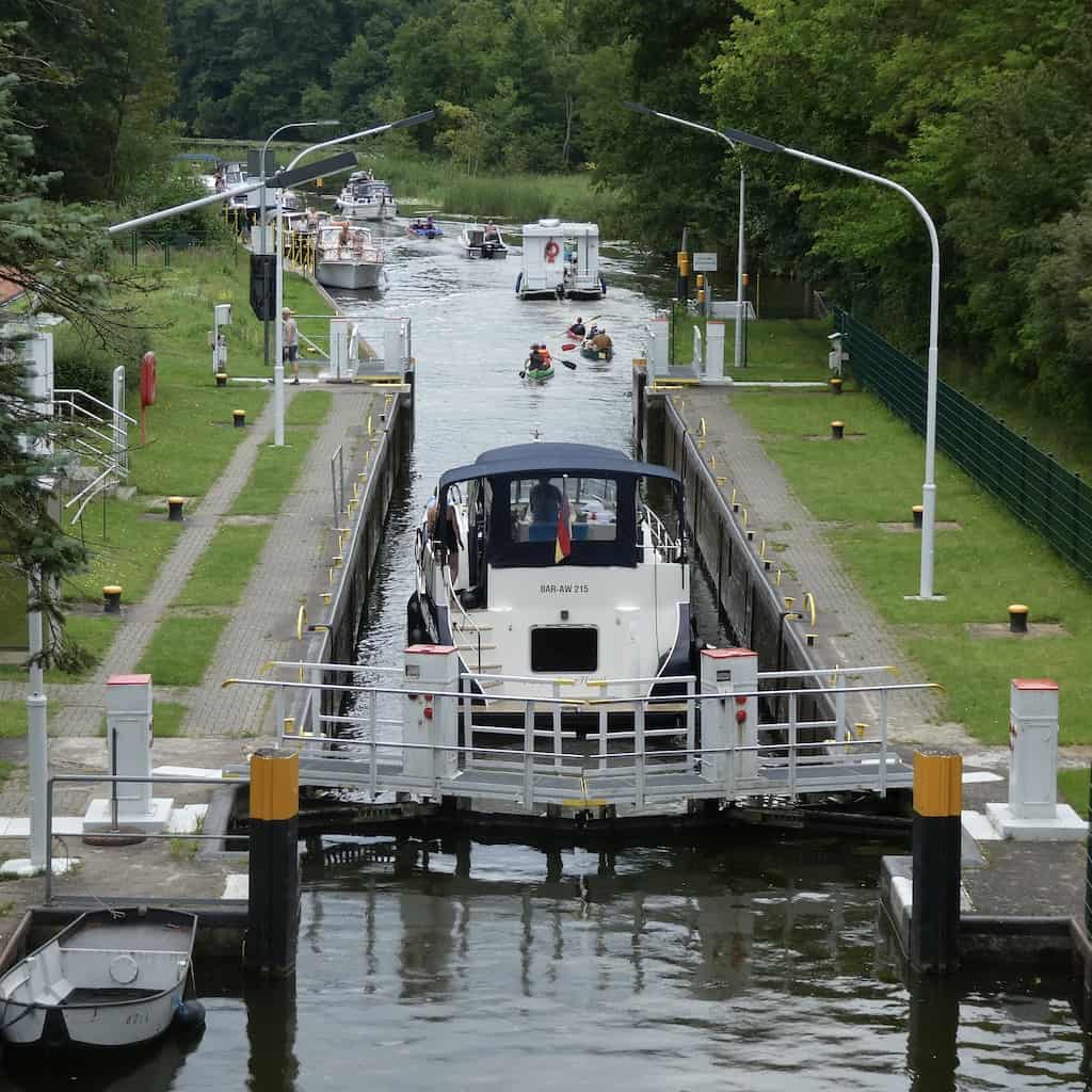 Wir fahren weiter durch die Strelitzer Seenplatte. Bei Canow schauen wir eine Weile beim Schleusen zu.